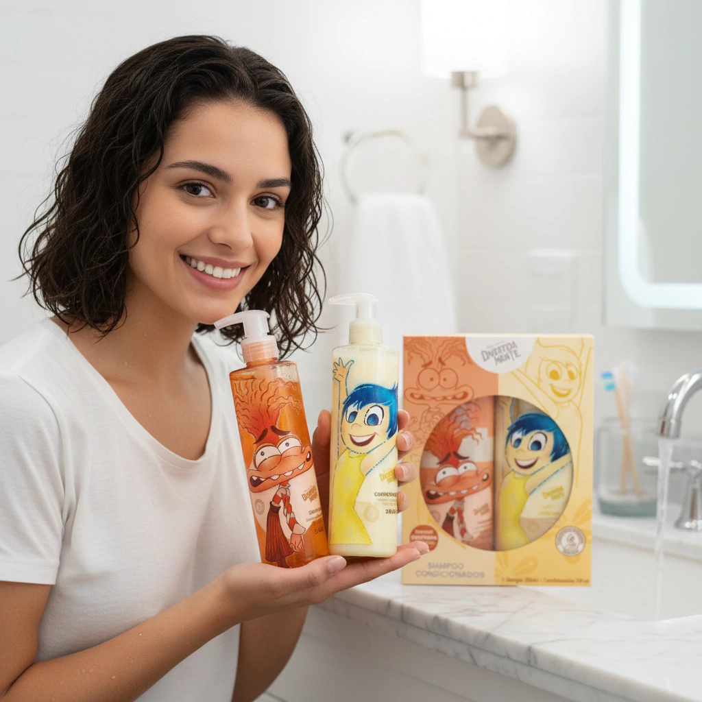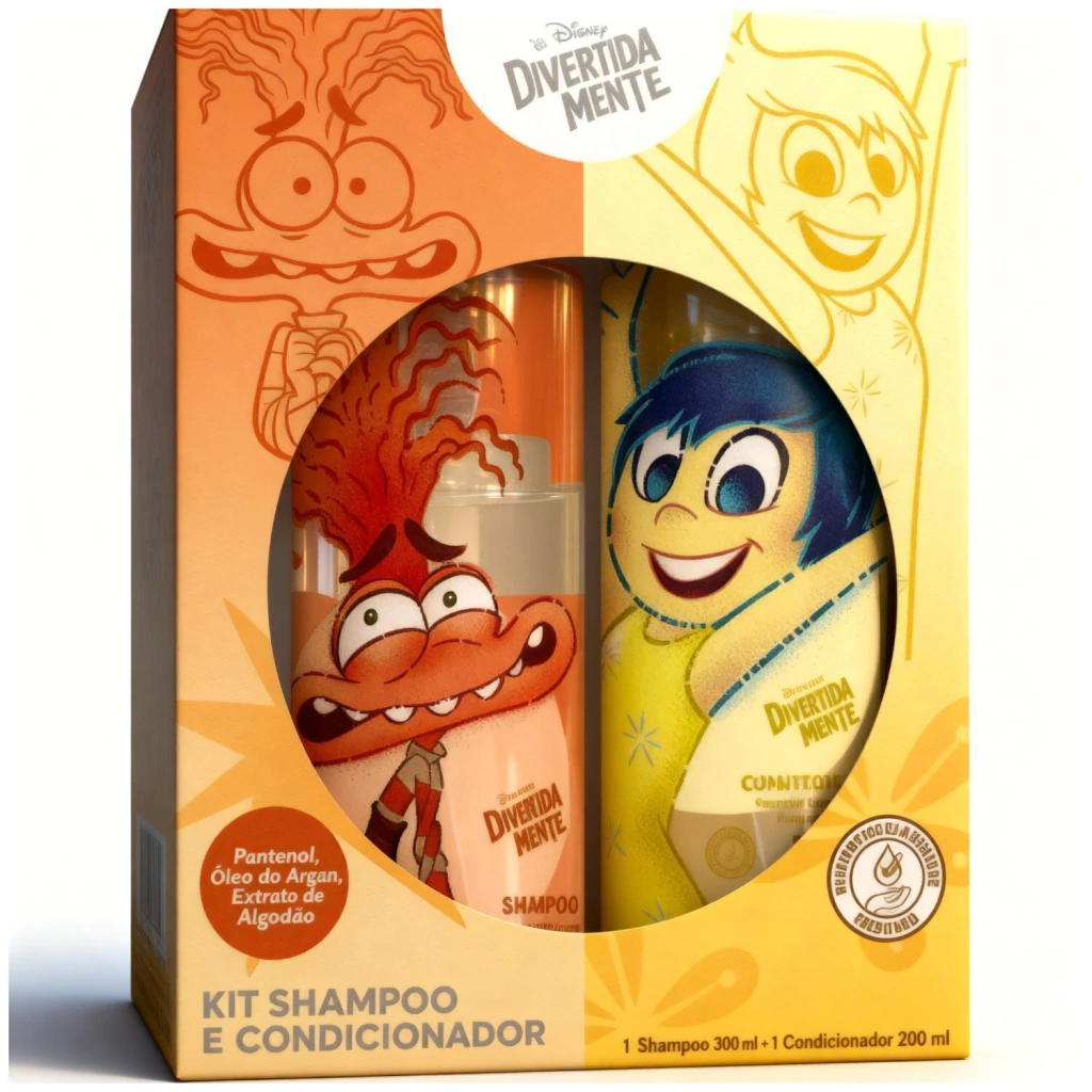 O Kit Caixa Shampoo Ansiedade e Condicionador Alegria Divertida Mente & Sabrina Sato é composto por: