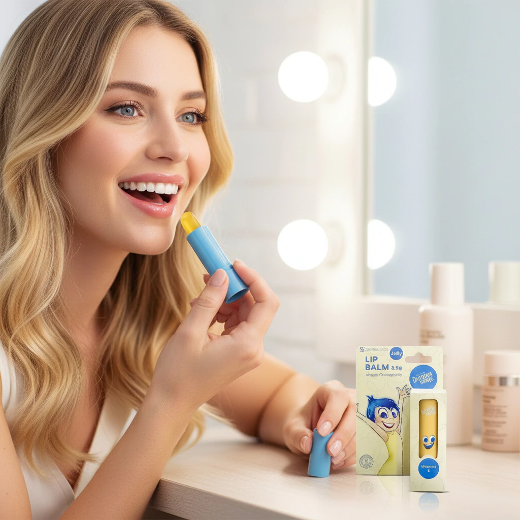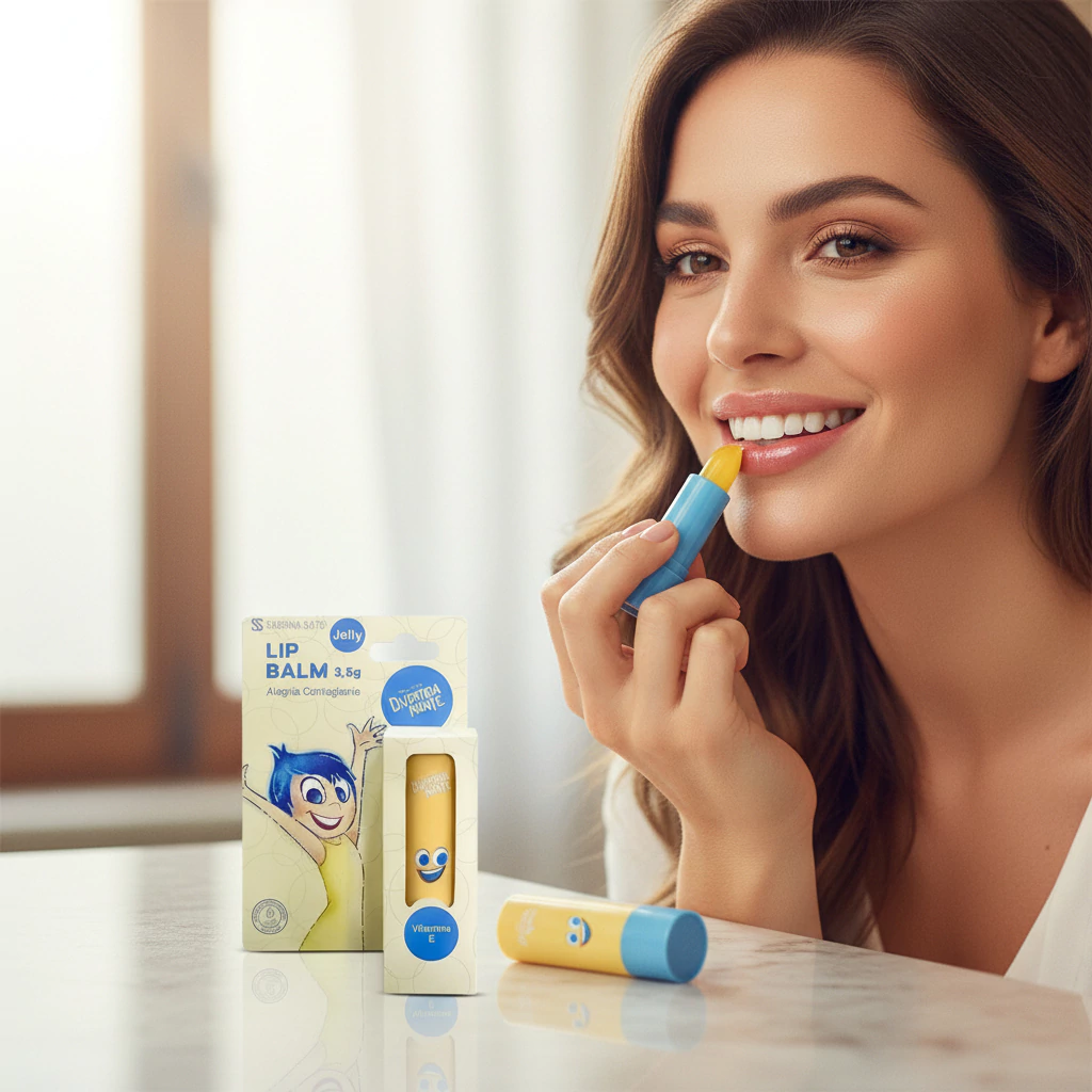 Inspirado na emoção Alegria, o Lip Balm Jelly Divertida Mente & Sabrina Sato une cuidado e conforto em uma fórmula desenvolvida para proteger, hidratar e restaurar os lábios com delicadeza.