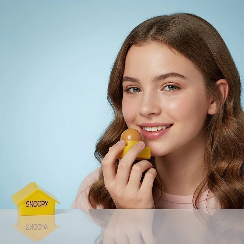 Deslize o Lip Balm Manga Snoopy & Ticiane Pinheiro sobre os lábios com suavidade — como quem espalha um pouquinho de amor