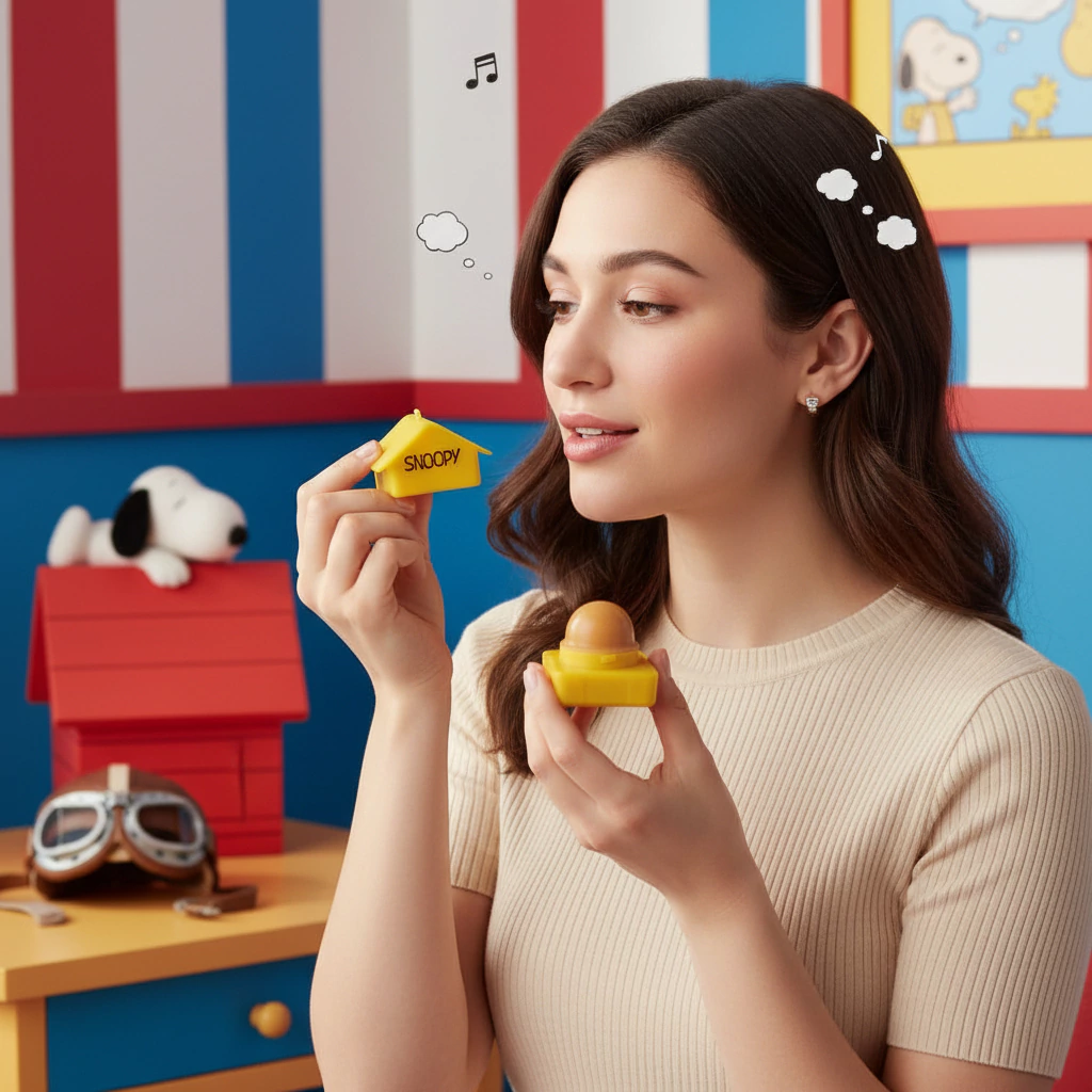 A embalagem em formato de casinha do Snoopy é pura ternura — perfeita para pendurar no chaveiro e levar com você em todos os momentos.