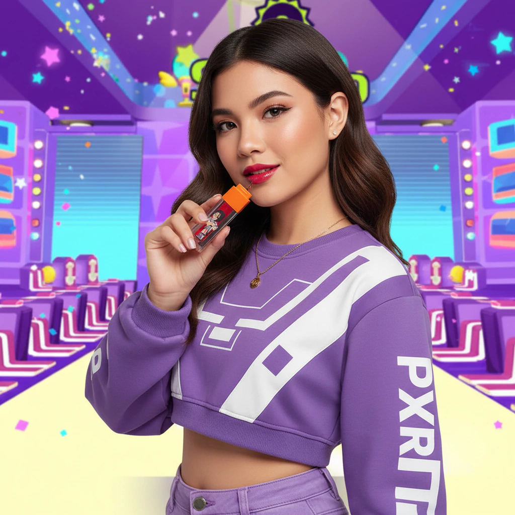 Com cor vermelha translúcida e glitter delicado, ele deixa os lábios radiantes com um acabamento luminoso e moderno, ideal para brilhar em qualquer aventura, dentro ou fora do jogo.