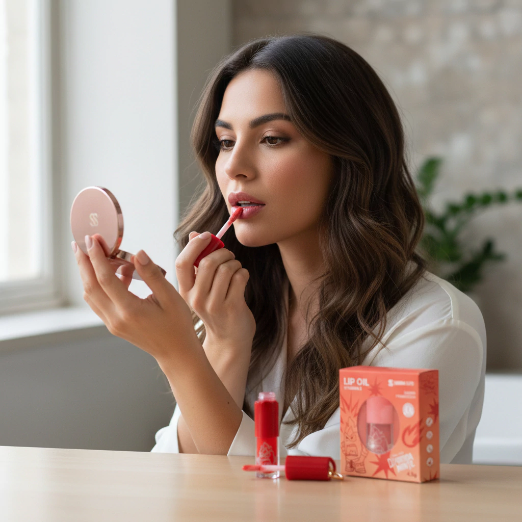Com o aplicador do próprio Lip Oil, deslize suavemente pelos lábios e espalhe para revelar cor e cuidado a cada passada.